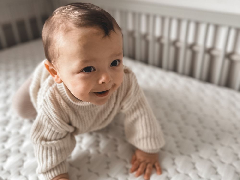 Eine Matratze zum Schlafen in Bauchlage ist dafür ideal. Außerdem beginnen Babys in Bauchlage schneller zu krabbeln.