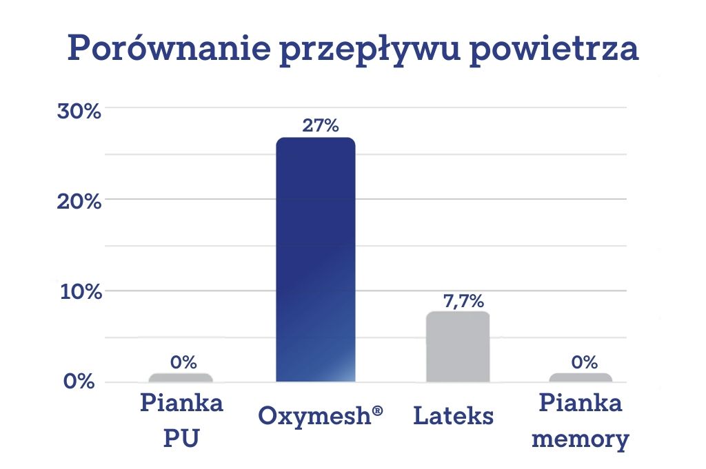 Oxymesh® ist 3,5-mal atmungsaktiver als Latex (349 %).