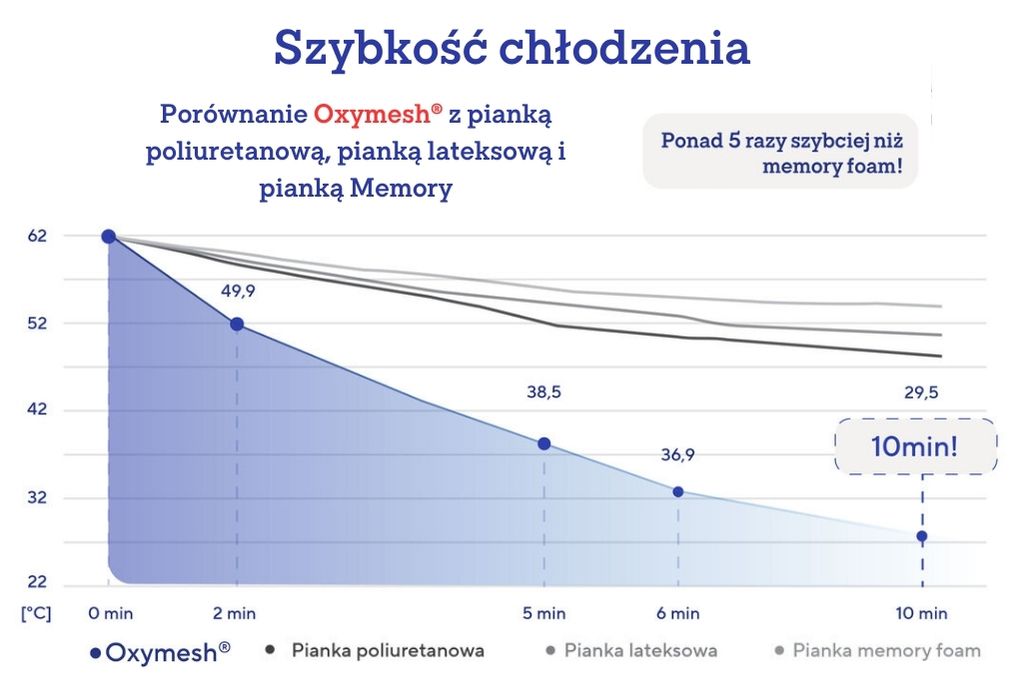Oxymesh® kühlt mehr als 5,5-mal schneller als Memory-Schaum.