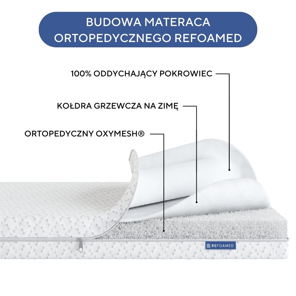 Le matelas orthopédique Refoamed à technologie Oxymesh® est une révolution pour ceux qui souffrent de maux de dos. Sa structure unique faite de milliers de fibres polymères offre un soutien optimal de la colonne vertébrale dans toutes les positions.
