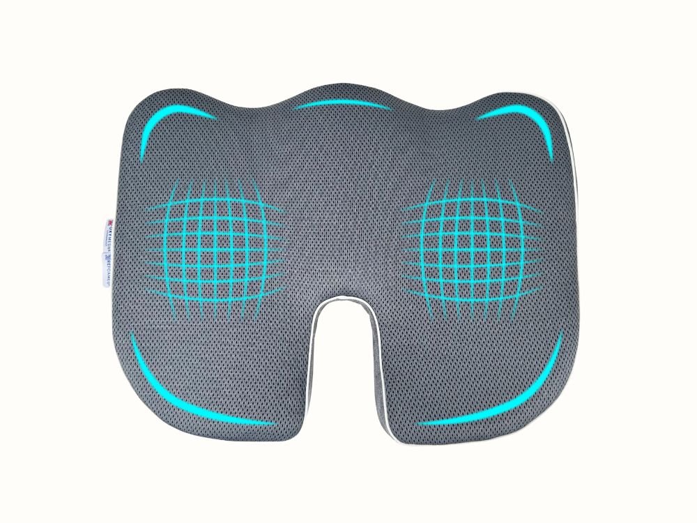 De vorm van ons kussen is ontstaan in samenwerking met een team van orthopeden en fysiotherapeuten. Het ergonomische gat aan de achterkant van het kussen ontlast niet alleen het stuitbeen en voorkomt pijn in de onderrug, maar vermindert ook druk op gevoelige plekken bij mensen die lijden aan aambeien.