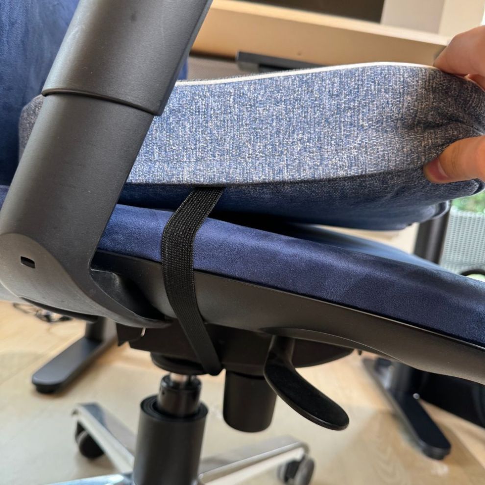 De speciale profilering van de hele kussenvorm stelt het bekken automatisch in de juiste positie tijdens het zitten. Het werkt alsof een onzichtbare fysiotherapeut de hele werkdag op je houding let.