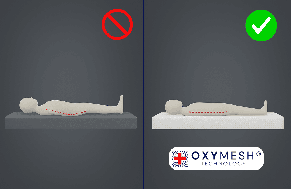 Traditionele schuim- en veermatrassen creëren drukpunten die ongemak en circulatiestoornissen kunnen veroorzaken. Oxymesh® technologie elimineert dit probleem en biedt optimaal comfort en ondersteuning.