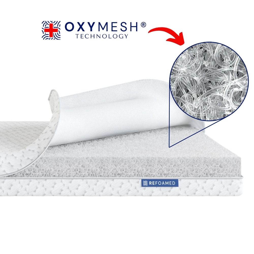 Het Refoamed orthopedische matras met Oxymesh® technologie is een baanbrekende oplossing voor mensen die lijden aan rugpijn. Dankzij de unieke structuur bestaande uit duizenden polymeervezels biedt het matras goede ondersteuning van de ruggengraat in iedere slaappositie.